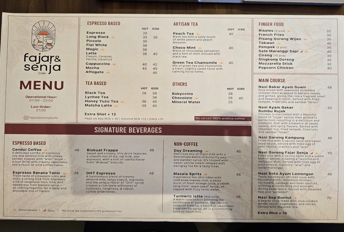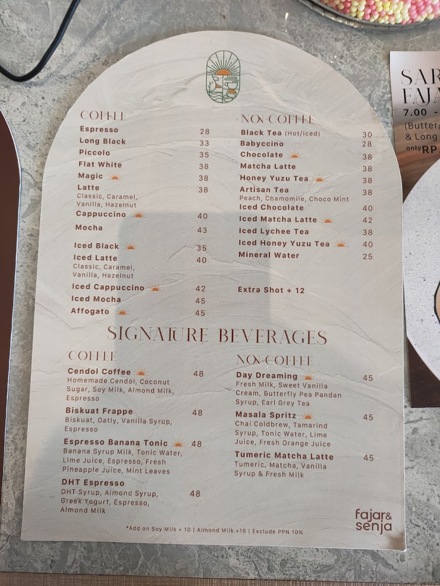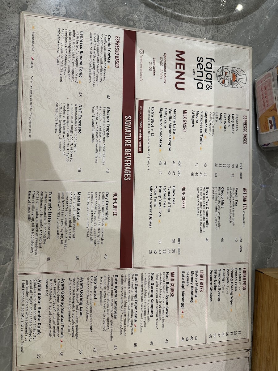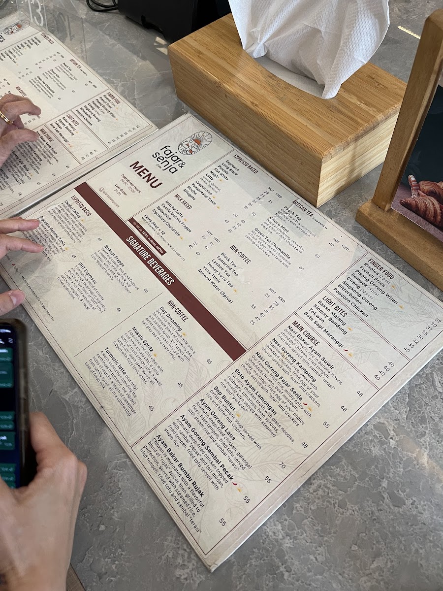 Fajar & Senja Cafe - Alam Sutera Menu